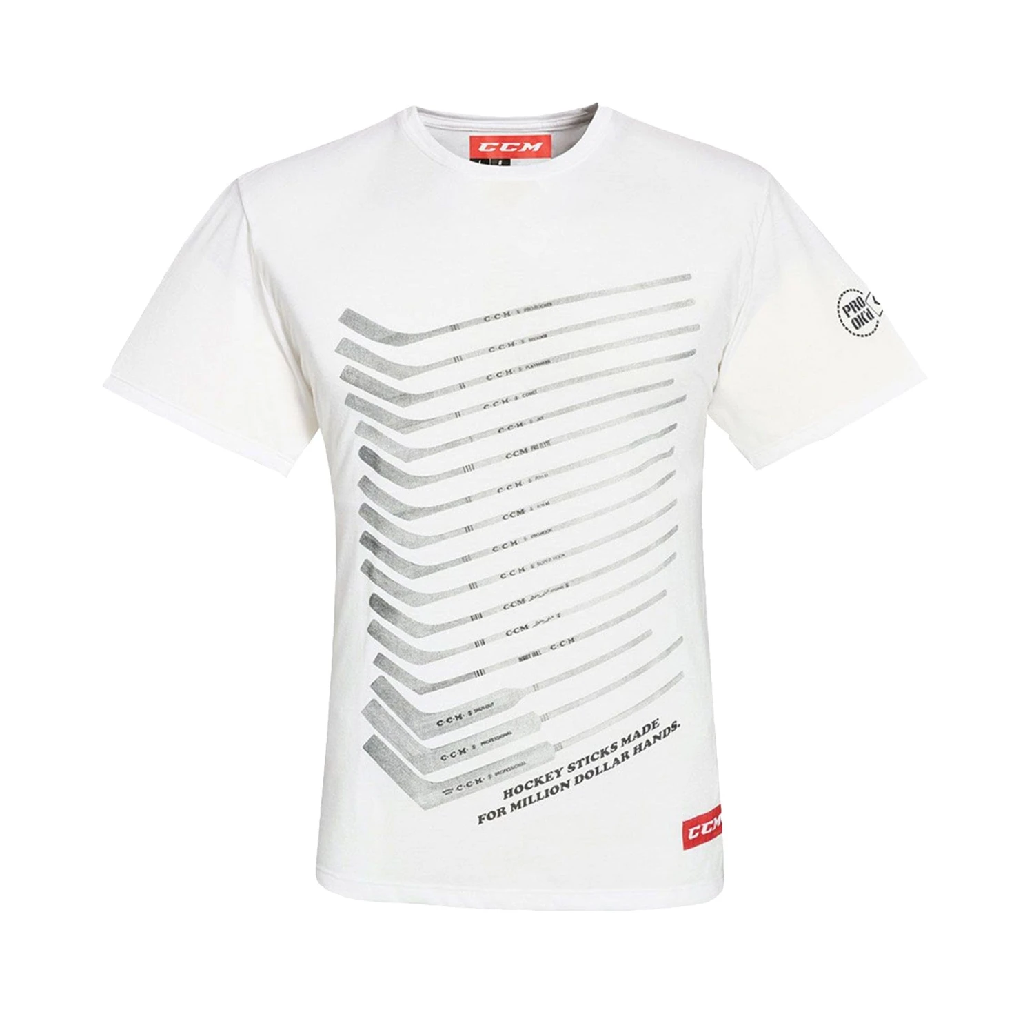 Screen-printed CCM Million Dollar Hands graphic with vintage sticks.