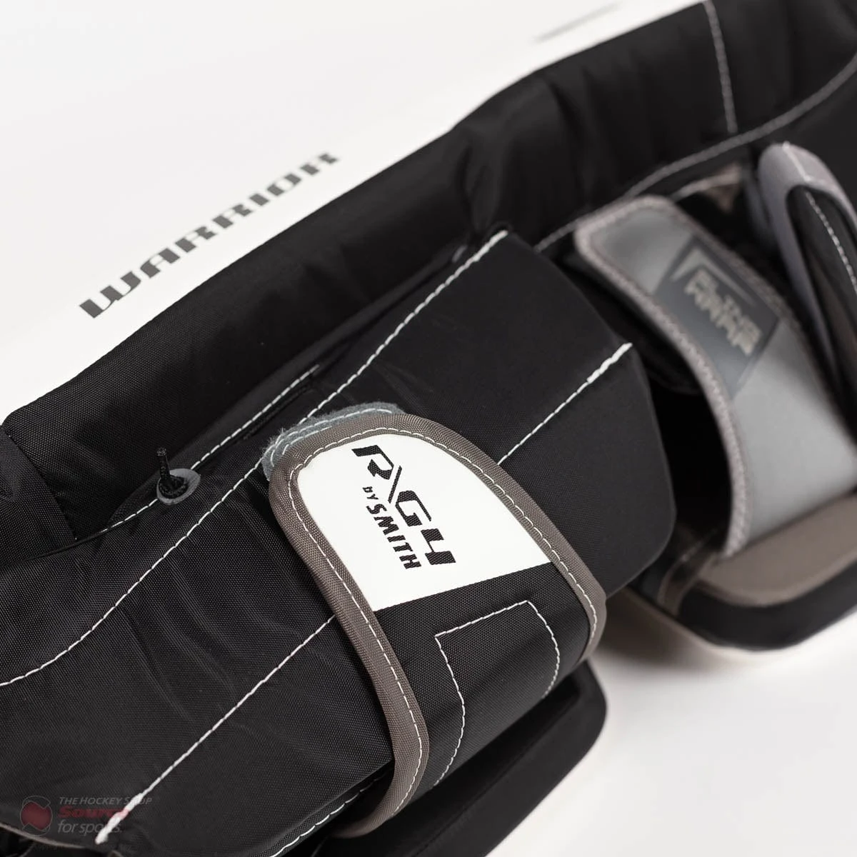 As well as the velcro straps these pads have, the also feature warriors Active Response Straps. These are elastics that replace the traditional toe ties that are on most goalie pads. These elastic straps, while being easier to put on than lace also stretch while the goalie tries to plant their skate on the ice, reducing stress on the knees and hips.