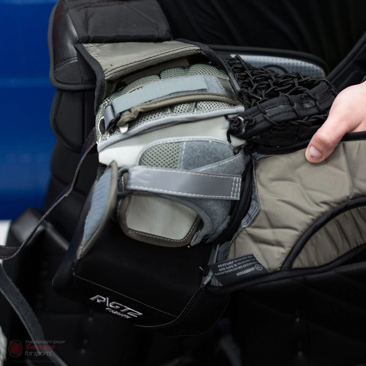 The cuff on the new Ritual GT2 Catcher allows the goalie their full wrist mobility without any restrictions. An open cuff lets the goalie present their glove the way they want to hold it, not forcing you to hold the glove a certain way. This makes the goalie feel more comfortable using the glove and therefor making the goalie more confident when making a glove save.